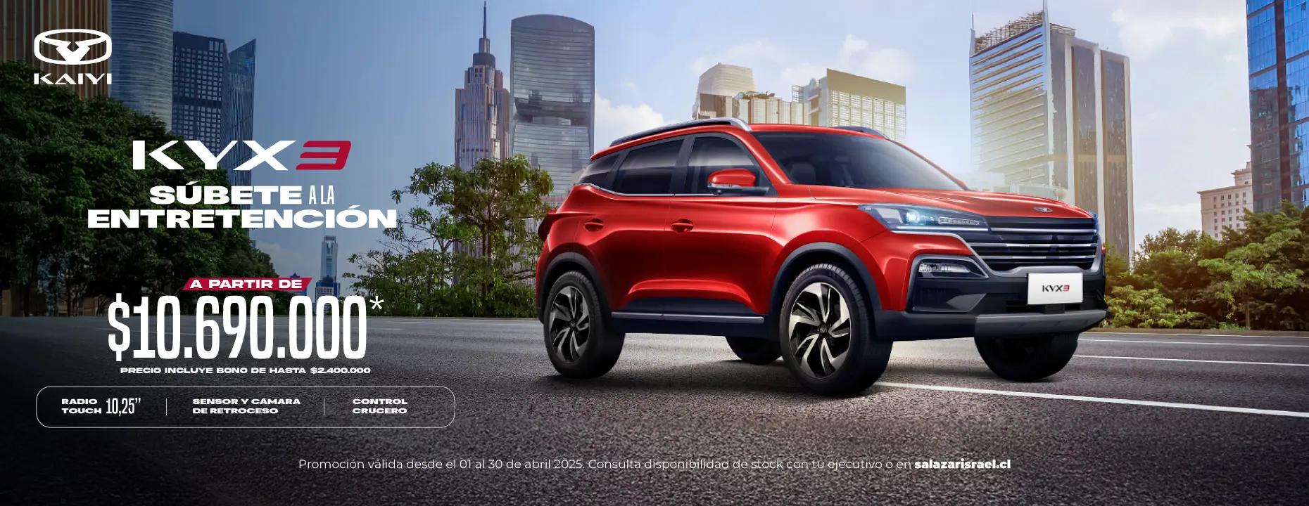 Kaiyi destaca por su innovadora tecnología y extraordinaria potencia en cada modelo. Visita Salazar Israel y descubre los nuevos vehículos que combinan un desempeño sobresaliente con la mejor seguridad en su clase. Conduce hacia lo extraordinario.